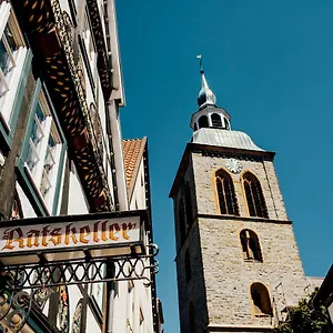 Dieses 4-Sterne-Hotel Hotel Ratskeller Wiedenbrück Rheda-Wiedenbrück liegt 43 Fahrminuten vom Flughafen Paderborn/Lippstadt entfernt und bietet ein Restaurant und einen Gepäckraum. St. Vitus ist 25 Minuten Fußweg entfernt gelegen.